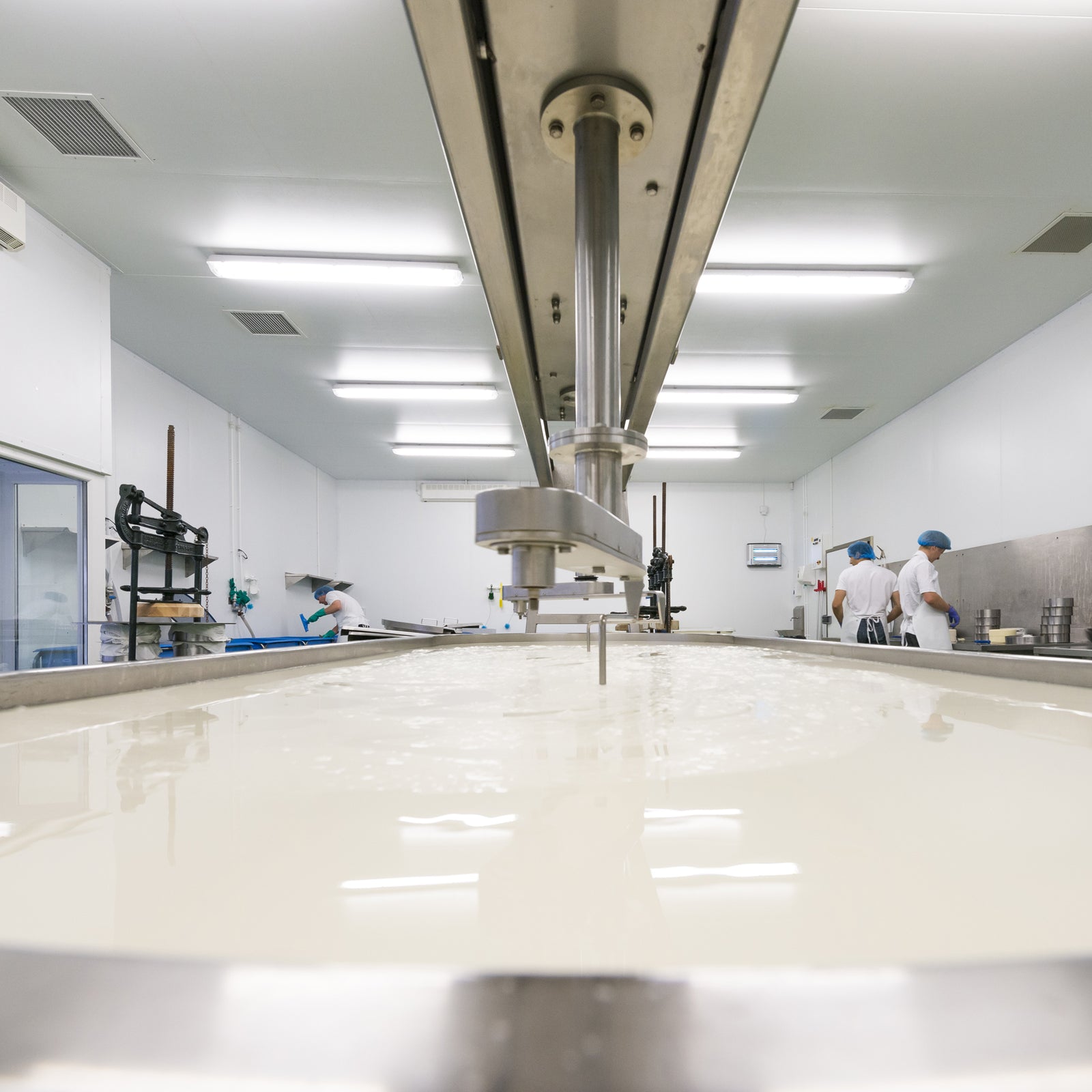 Fast forward to 2013, Gorwydd Caerphilly was in full production and the cheese making was starting to outgrow the family farm. The brothers were keen to find somewhere that would allow them to build their own dairy and source milk from one single herd of cows. They had a great milk supply from various farms around them in Wales, but wanted to create a partnership with one farm to ensure a consistent high quality of milk.